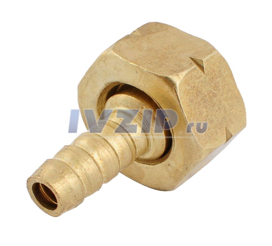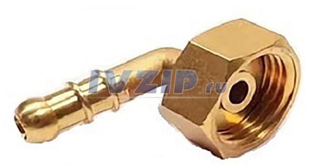 Штуцер (латунь) с накидной гайкой ДУ-15 (1/2") вн. под шланг d-9 мм (угловой)