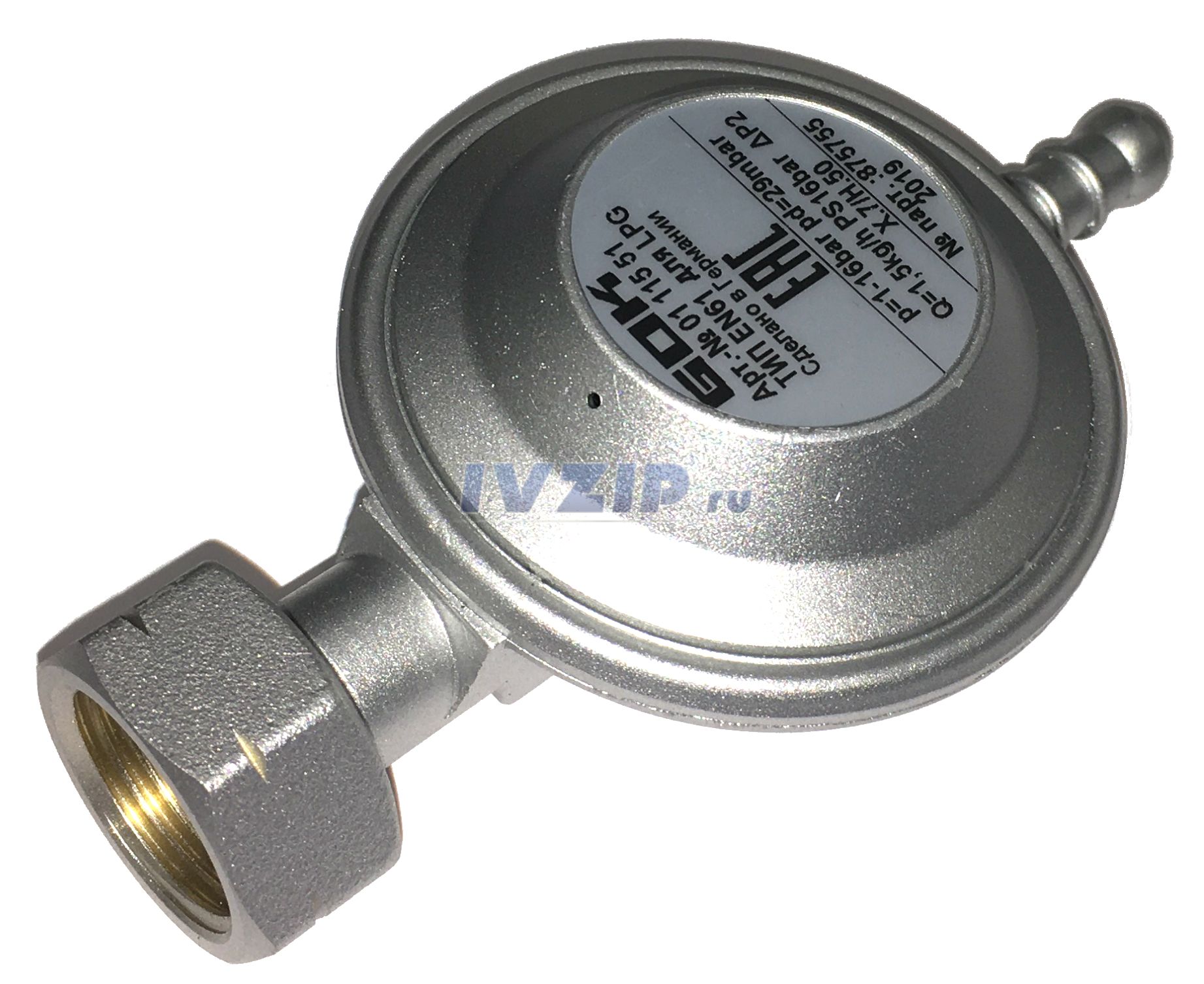 Регулятор давления Лягушка GOK (Германия, для баллонов с вентилем стандарта СНГ, 29mbar, 1.5кг/ч) 01.115.51