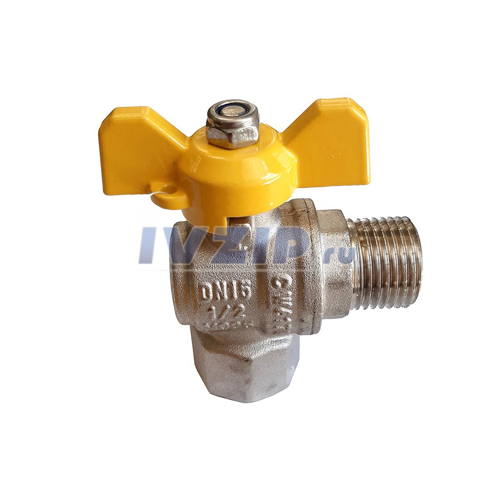 Кран шаровый газовый ProFactor (угловой, ДУ-15, вн/нар, бабочка) PF GBV 336A