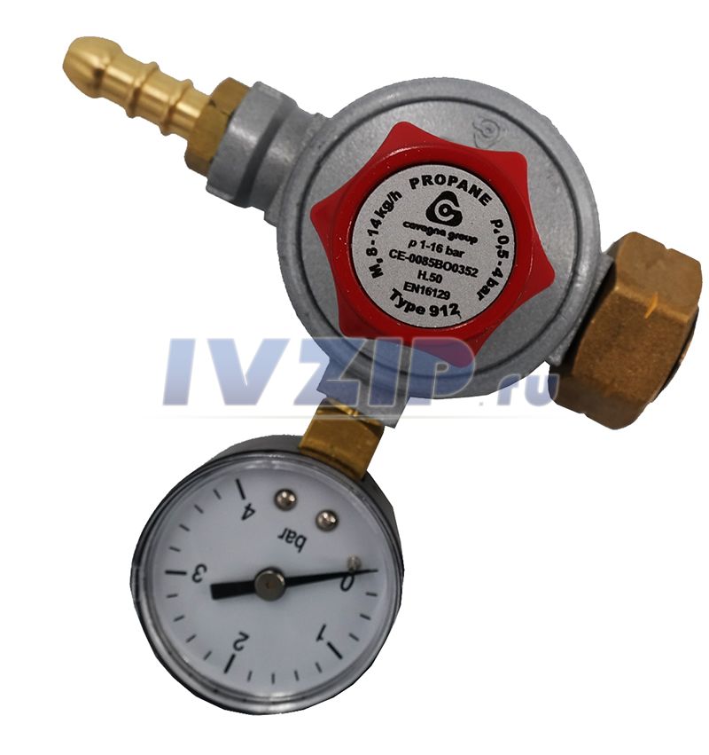 Регулятор давления Лягушка CAVAGNA GROUP, Италия, с манометром, давлен.регулир.0,5-4mbar, 8-14кг/ч, соед.вх.W21,8x1/14LH, вых.штуц.10мм 9115901146