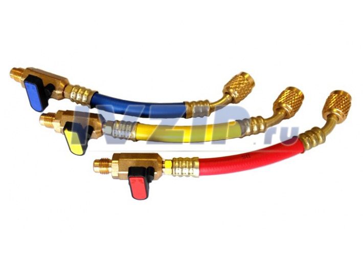 Шланг заправочный Value VRP-С-RYB (L=1.5м, R22, 1/4"x1/4", с вентилем) (компл. 3шт)