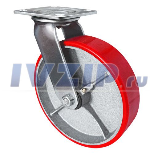 Колесо поворотное SCp 80 б/г полиуретан (6) (200мм, нагрузка 460кг, обод чугун, межосевой размер 73×85мм, платформа 100×115мм)